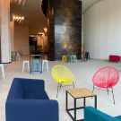 Nous vous conseillons de mélanger les teintes variées de l’Acapulco avec d'autres fauteuils mais aussi avec des articles colorés disponibles à la location tels que le pouf Kubb ou la table basse Bastia. Vous pouvez également oser le mix and match et associer le fauteuil Acapulco à la location d’un canapé Penseur. Cette combinaison astucieuse donnera à vos événements une ambiance conviviale et tendance.